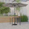 Emma and Oliver 3 Piece Patio Table Set - Synthetic Faux Teak 35" Square Dining Table with Umbrella Hole & Gray Umbrella with Weighted Base
