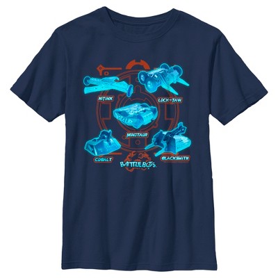 • Featured on this tee are several Battlebots in neon blue with their names below them!