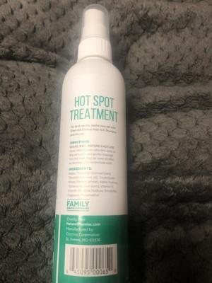 I am writing this review having not used it on my dog. First of all, it came unsealed which I didn’t really care for. It should have a safety seal just like any other shampoo or liquid you would purchase for yourself. It does have a nice smell, and the packaging makes it seem like it’s “all natural”. Guess what? It’s not. It contains FRAGRANCE which is full of unnatural chemicals which will make your dog likely to be even more irritated than the hot spot you’re trying to treat!! Do your pup a favor, skip this product and go to the vet and get a product that isn’t just trying to make a dollar for the company — chances are, they cost about the same.