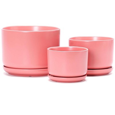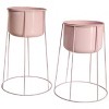 Uniquewise Set of 2 Decorative Contemporary Pink Metal Flower Planter Holder with Stand for Entryway, Living Room or Dining Room