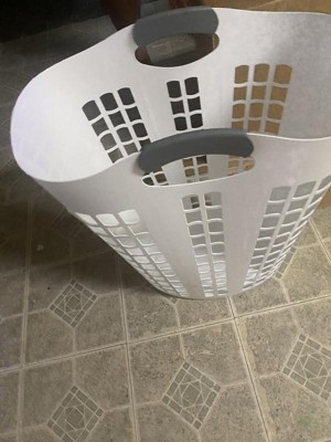 [This review was collected as part of a promotion.] The hamper itself is very sturdy and stiff. It is not flimsy nor does it flex like the usual upright hamper does. I do enjoy the gray handles because it offers a comfortable group so that the basket is it digging into your hand while you are caring.