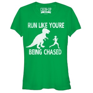 Juniors Womens CHIN UP Dinosaur Run T-Shirt - 1 of 3