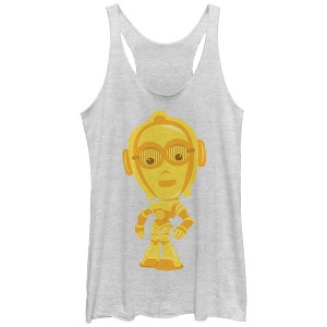 Women's Star Wars Cute Cartoon 3-CPO Racerback Tank Top - White Heather - Large
