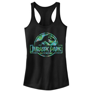 Juniors Womens Jurassic Park Floral T Rex Logo Racerback Tank Top - 1 of 4