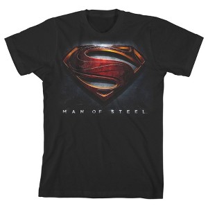 • GRAPHIC TEE: Superman's logo from the Man of Steel movie decorates this graphic tee whie white text below the image spells out the film's title. This t-shirt makes a great gift for young Superman fans.