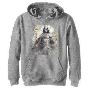 Boy's Marvel: Moon Knight Golden Hieroglyphs Portrait Sketch Pull Over Hoodie - Athletic Heather - Large