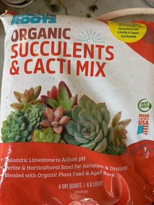 [This review was collected as part of a promotion.] This organic succulents and cat dynamics has limestone to adjust the pH. There is horticultural sand for aeration and drainage. It is blended with organic plant food and aged bark. This stuff is great for your cactus and succulents.