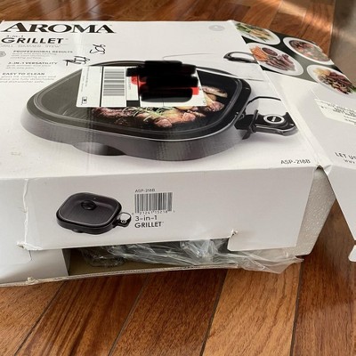 Aroma Housewares ASP-218B Grillet 4Qt. 3-in-1 Cool-Touch Electric Indoor Grill Portable Black
