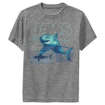 Boy's Jaws Retro Distressed Poster T-Shirt - Charcoal Heather - Large