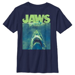 Boy's Jaws Neon Poster T-Shirt - Navy Blue - X Large