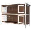 PawHut 54" 2-Story Large Rabbit Hutch Bunny Cage Wooden Pet House Small Animal Habitat Lockable Doors, Tray, Roof for Outdoor/Indoor Brown