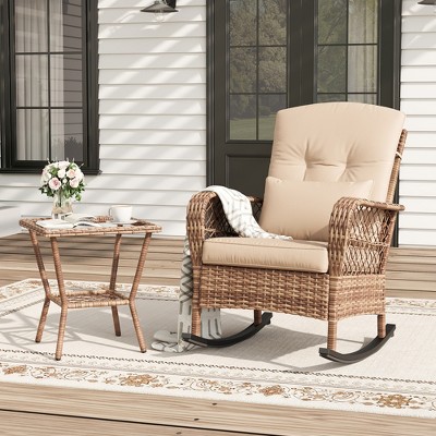 Comfy rattan rocker with super plush cushions.