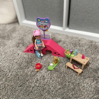 Barbie Chelsea Doll and Accessories Skatepark Playset with 2 Puppies and 15+ pc