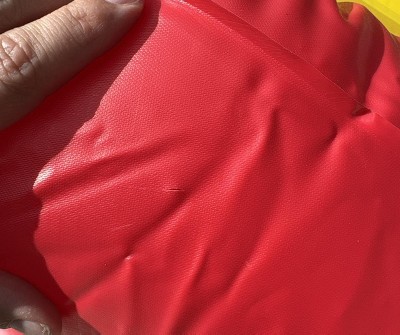 One side had a very small hole when we received it. The main slide got a hole after 2 uses.