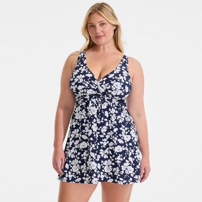 Lands' End believes every body is a beach body! Whether you're going to aqua aerobics running through the sprinklers with your little ones or taking a beach vacation all you need is the right swimwear. And we think this women's plus size SlenderSuit swimsuit is a wonderful choice. Made from durable LYCRA Xtra Life spandex this slimming bathing suit will hold onto its shape through many washes and wears. The amazing SlenderSuit fabric keeps your tummy in check while smoothing away lumps and bumps. And it even provides UPF 50 sun protection - the highest you can get - to prevent burns. We've also added a gorgeous wrap design a flatttering v-neck cut and a wire-free soft cup bra that provides a boost where you need it most. Don't forget to pack this ladies swimsuit when you're heading off on a trip. The glamorous retro-inspired style is right at home in a luxurious resort - or wherever you may find yourself. Just add strappy sandals dark sunglasses and a sarong to complete your look.