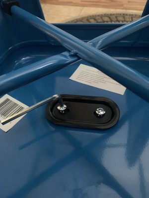 [This review was collected as part of a promotion.] Put this chair together which was easy, but the metal was slightly warped and had to be bent into shape to fit the screws. The metal is thin and not sturdy. The wooden seat sits on top of the chair with no way to anchor it down. It’s not mentioned in the instructions either.
