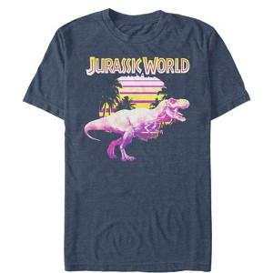 Men's Jurassic World Retro T. Rex Sunset T-Shirt - Navy Blue Heather - X Large