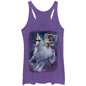 Women's Lost Gods Boombox Cat and Unicorn Space Song Racerback Tank Top - 1 of 3
