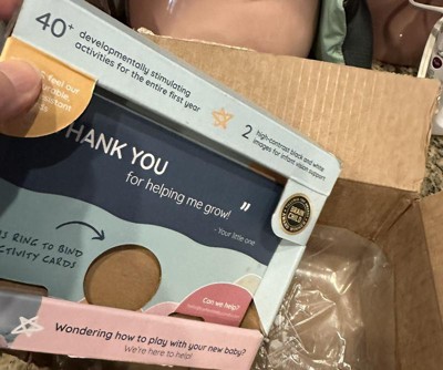 These compact little cards offer up so many fun ideas to do with your baby. It's nice to see the different skills they need to learn and the milestones behind them. Will definitely be my go-to baby gift for parents, grandparents or caregivers!