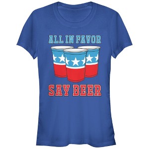 Cast your ballot for beer and all its refreshing goodness with the Lost Gods All in Favor Say Beer Royal Blue T-Shirt! Three red, white, and blue cups with stars are printed next to "All in Favor Say Beer" on the front of this funny blue beer shirt.