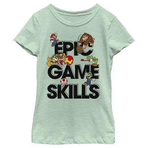 Girl's Nintendo Super Mario Epic Game Skills Character Collage T-Shirt - Mint - Small