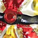 Made of glass. A Gold Cord Is Attached For Hanging This Ornament.