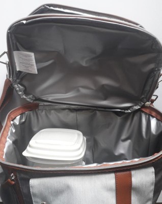 [This review was collected as part of a promotion.] This Wickenden Lunch Bag is big enough to fit our lunches and keeps them cool. I love the stylish look of this lunch bag and the fact that my husband likes to use it for work. It's great for both women and men. This bag has two insulated compartments and a water bottle holder on the left. It included two plastic dishwasher-safe containers. There's also a front pouch to put extra stuff in. The lunch bag is made of high-quality durable material and I highly recommend it.