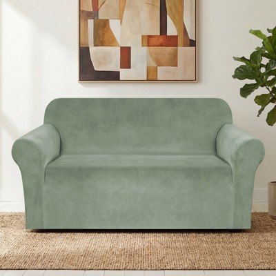 2pc Steps Stretch Loveseat Slipcover Dark Green - Zenna Home: Elastic-Fit, Indoor Polyester & Spandex