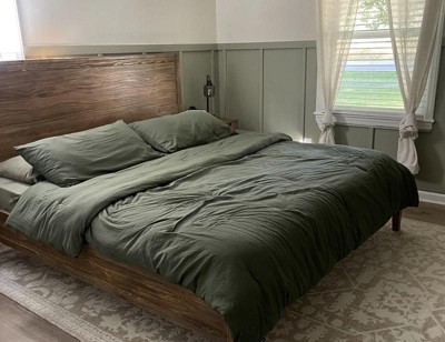 this bed frame is insanely sturdy and didn’t take too long to assemble for its size! buyer beware, while it’s marketed as a light driftwood with grey undertones it is SO orange!!!!! we decided to re-stain it so it matched our floors better and it accepted the stain wonderfully!!!! all in all this is such a good deal for this bed!