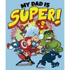 • Featuring a cartoon graphic of the Avengers and the phrase "My Dad is Super!"
