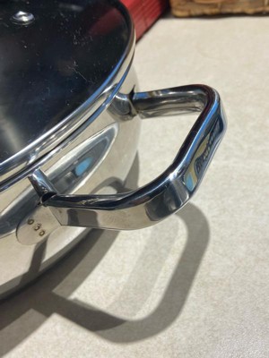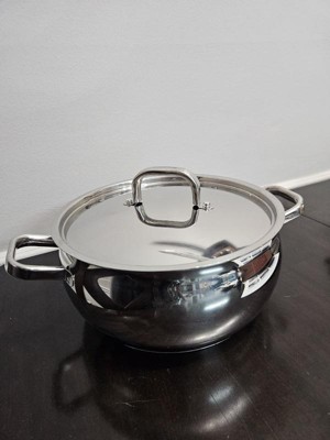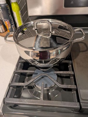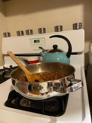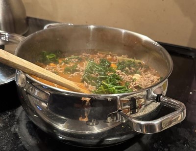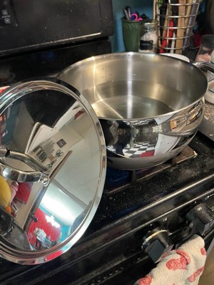 [This review was collected as part of a promotion.] This skillet is nicely designed and well made, the thick stainless steel feels heavy and solid., and the layered base heats up evenly on my gas stove. The size of this pan is perfect for a small portion of pasta, some rice or a soup. So far this is my favorite pan is my kitchen