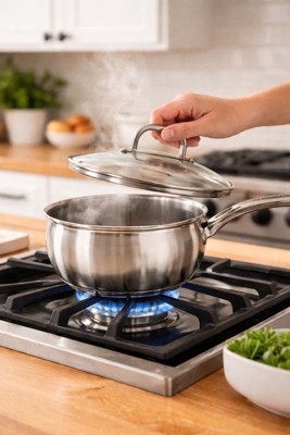 [This review was collected as part of a promotion.] I’ve been loving the BergHOFF Belly Shape Sauce Pan for everyday cooking. The 18/10 stainless steel feels premium and heats evenly, making sauces and gravies come out perfect every time. The ergonomic handle is comfortable to hold, and the measurement markings are super handy. I also appreciate the glass lid for easy monitoring without losing heat—stylish, practical, and reliable. Good capacity and weight.