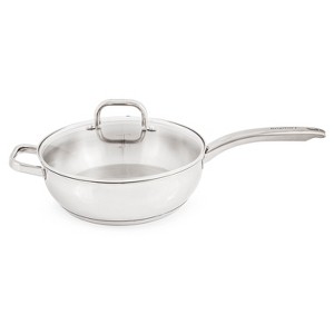 BergHOFF Belly Shape 18/10 Stainless Steel 9.5" Deep Skillet With Glass Lid 3.2Qt.