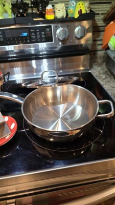[This review was collected as part of a promotion.] This skillet is nicely designed and well made, the thick stainless steel feels heavy and solid., and the layered base heats up evenly on my gas stove. The size of this pan is perfect for a small portion of pasta, some rice or a soup. So far this is my favorite pan is my kitchen