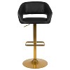 Product Name: Merrick Lane Contemporary Black Vinyl Adjustable Height Barstool with Rounded Mid-Back and Gold Base