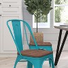 Merrick Lane Metal Stacking Chair in Crystal Teal-Blue with Curved, Slatted Back and Rustic Wood Seat