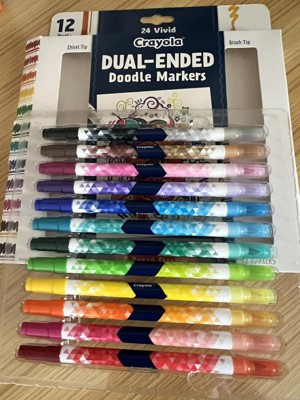 Crayola 12ct Doodle & Draw Dual Ended Markers, 24 Colors, Brush & Chisel Tip, Teacher Essentials, Adult Coloring Supplies, Ages 3+