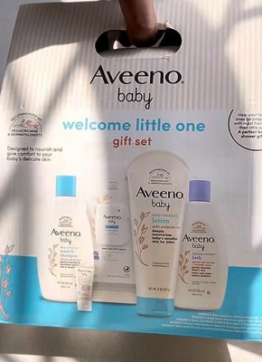 Aveeno Baby Welcome Little One Essentials Skincare Gift Set: Aloe, Lavender, Hypoallergenic, Alcohol-Free - 5ct