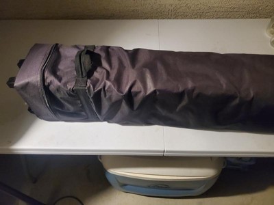 [This review was collected as part of a promotion.] Table and chairs are a decent set, no issues they are pretty sturdy and reliable. The chairs have to be folded in by the back legs not by lifting up the seat like your typical folding chair. The canopy is cheaply made, the metal used is flimsy and not sturdy. After one use and mild winds the side poles all bent and face in, the legs all either bend in or out when up. It is very easy to put up and down and the case makes it really easy to put away. With the wheels it makes it easy to roll into storage.