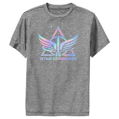 To infinity and beyond! Take your style to out-of-this-world levels with new officially licensed apparel for the whole family from the highly anticipated new movie Lightyear, featuring the origin story of Toy Story's lovable hero Buzz Lightyear! This women's tee features a large graphic of the Star Command logo in cool holographic-looking colors!