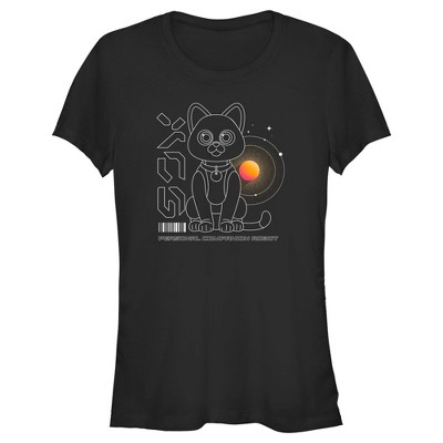 To infinity and beyond! Take your style to out-of-this-world levels with new officially licensed apparel for the whole family from the highly anticipated new movie Lightyear, featuring the origin story of Toy Story's lovable hero Buzz Lightyear! This women's tee features an adorable outline of Sox with "Personal Companion Robot" printed below.