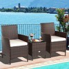 Costway 3PCS Patio Rattan Furniture Set Cushioned Sofa Glass Tabletop White