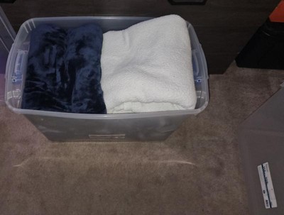 [This review was collected as part of a promotion.] One thing we always need more of is good totes! I got these Homz 112 Quart Heavy Duty Clear Stackable Containers in a two pack. I really like that they're stackable, it helps with saving space, and makes organizing easier! I got these to store and organize our bed sets better. These held quite a bit. I was able to fit about 4 of the larger blankets in one container, and about 5 sheet sets, and pillows in the other. I also liked that they clip shut on the ends. But, I'd like to see them have clips on the sides. That would help a lot with being able to fit more in without the sides popping out. Other than that they're terrific! Very heavy duty, durable, and versatile! They help save so much space with being stackable and the quality is outstanding!