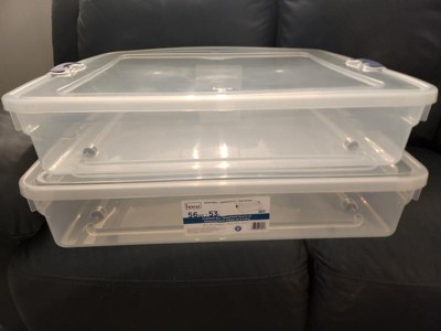[This review was collected as part of a promotion.] These totes are very sturdy and well made. I am using one for pictures as we're about to move and i love that its clear and i can see what's inside as that makes unpacking easier. I also love that its a two pack of totes they're also a very good size. Only con to me is that they had a strong smell when i opened the box but it quickly went away. Definitely would recommend especially for moving as they're such a convince to use.