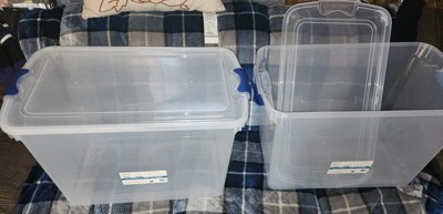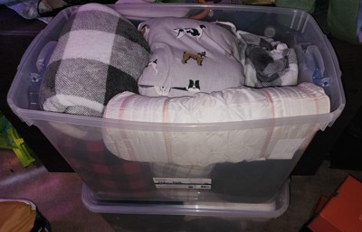 [This review was collected as part of a promotion.] The Homz 112 Qt Heavy Duty Clear Plastic Stackable Storage Containers are awesome!! They are huge and extremely heavy duty. When I got them my kids jumped in them and wanted to use them as a fort. I thought for sure they were going to break them before I even got to use them but they didn’t!! I am using them to pack away some clothes until summer and also for Christmas decorations!