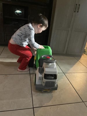 [This review was collected as part of a promotion.] This trash truck provides hours of fun for my little one. The working bin to dump into the trash truck provides extra entertainment. The only assembly was to put the bin on, which was very easy and required no tools. It just goes into the slots and it is there. Little one gets lots of exercise pushing with her feet to walk this toy around the house. We love the excitement this brings.