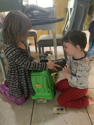 Bought for 3 year old nephew, he is mesmerized by the garbage truck each week. He knew exactly what and how to play with it. He jumps on and says "Bye bye, I'm going to work". Soooo cute. And he drives around the living room actually picking stuff up instead of throwing stuff down. Lol