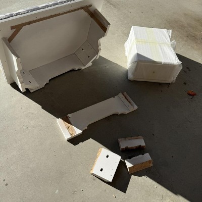 Unfortunately the vanity was damaged in transit and the pieces to the stool were crumbled into multiple pieces and can’t be salvaged.