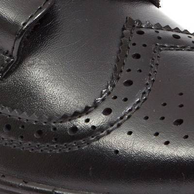 The wingtip has been a popular men's shoe style for ages because it's a great mix between dressy and a bit more casual. Now we've updated it as a modern lace-up oxford for kids, while keeping true to the classic look with brogue detailing on simulated leather and a burnished toe. An EVA insole ensures comfort with every step, laces allow for a flexible fit and the PU outsole is non-marking.