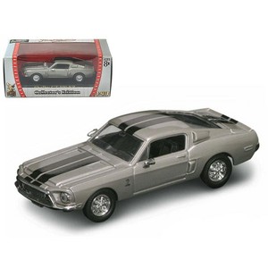 1968 Ford Mustang Shelby GT500 KR Silver with Black Stripes 1/43 Diecast Model Car by Road Signature